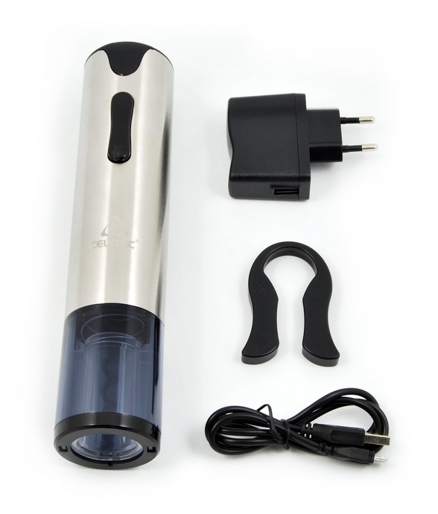Tělo otvíráku je vyrobeno z kvalitní leštěné nerezové oceli. Celkový vzhled otvíráku je velmi elegantní, což z něj činí ideální dárek pro všechny milovníky vína. Elegantnost otvíráku podtrhuje také pěkné dárkové balení, kde kromě otvíráku naleznete adaptér pro nabíjení, USB kabel a kleště na odstranění fólie z hrdla láhve.
