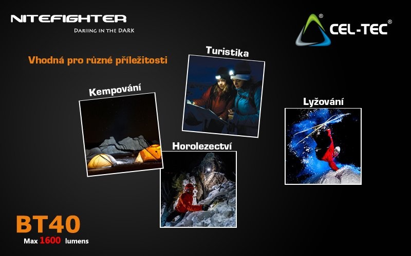 Nitefighter® BT40S je vybavena nejnovější LED 4×Cree XP-G LED - velmi vysoký světelný výkon a extrémně dlouhá životnost, která dosahuje až 50.000 hodin. Svítilna je konstruovaná pro náročnou venkovní cyklistiku a další outdoorové aktivity.![]()